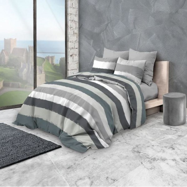 Parure Copripiumino Matrimoniale Infinity Dover Grigio 255x200 cm 100% Cotone Completo di Sacco e Federe