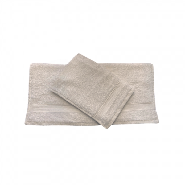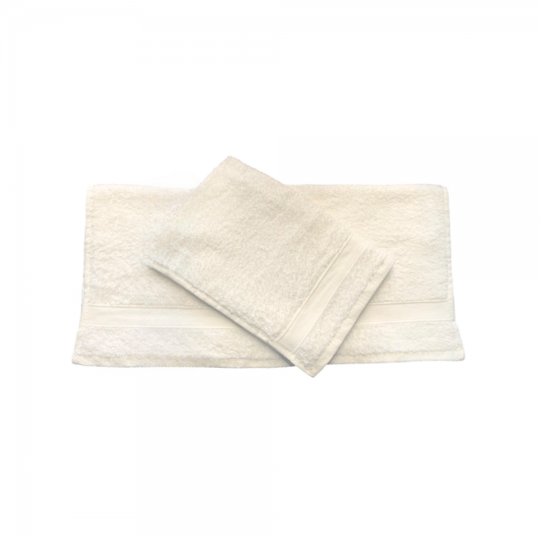 GLOUPIE Set 2 Asciugamani Bagno Viso E Bidet In 100% Spugna Di Puro Cotone In Tinta Unita Dal Color Latte