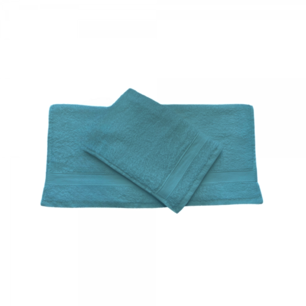 GLOUPIE Set 2 Asciugamani Bagno Viso E Bidet In 100% Spugna Di Puro Cotone In Tinta Unita Dal Color Ottanio