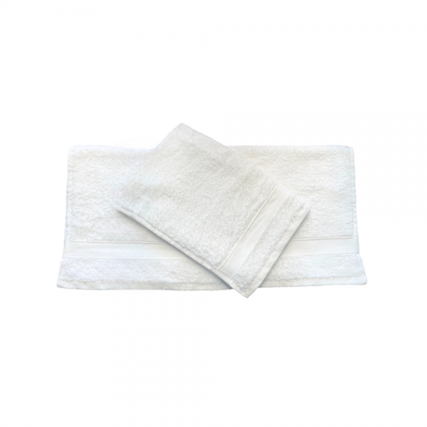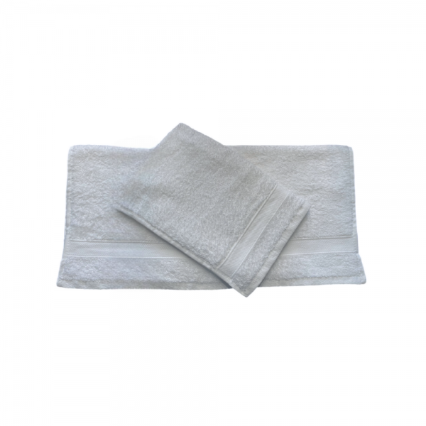 GLOUPIE Set 2 Asciugamani Bagno Viso E Bidet In 100% Spugna Di Puro Cotone In Tinta Unita Dal Color Bianco