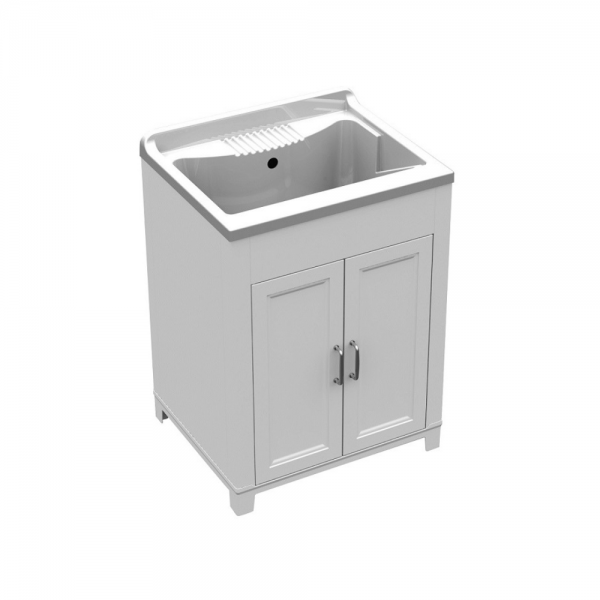 GLOUPIE Mobile Lavatoio Wash Con 2 Ante Con Vasca, L 60 x P 50 x H 85 cm, Completo Di Asse Lava Panni E Kit Di Scarico