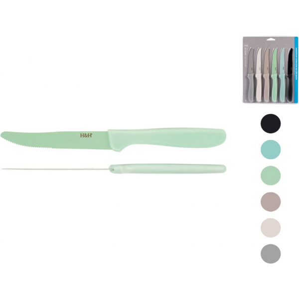 Set 6 coltelli in acciaio inox mezza lama seghettata grigio