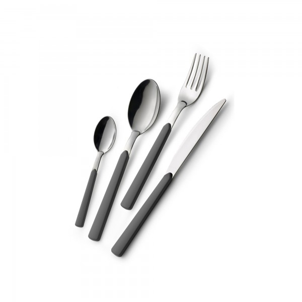 GLOUPIE Set 24 Posate Loft Grigio Per 6 Persone in Acciaio Inox e Manico In ABS Made In Italy Lavabili In Lavastoviglie