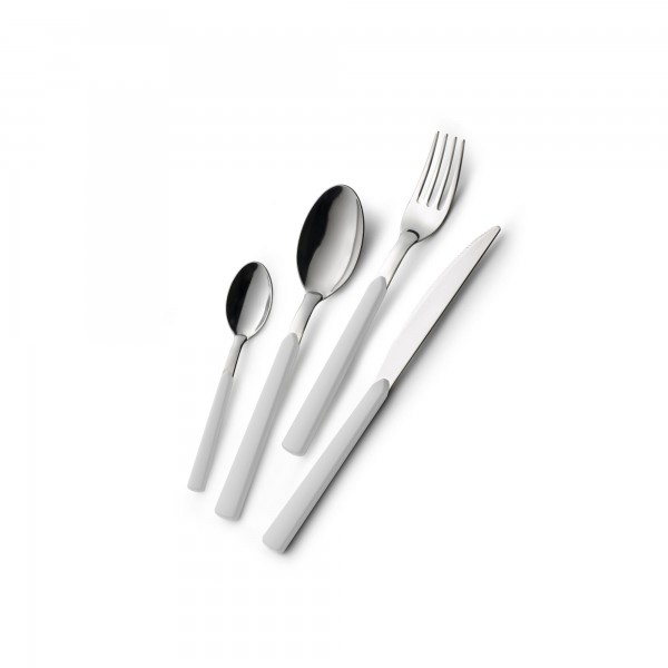 GLOUPIE Set 24 Posate Loft Bianco Per 6 Persone in Acciaio Inox e Manico In ABS Made In Italy Lavabili In Lavastoviglie