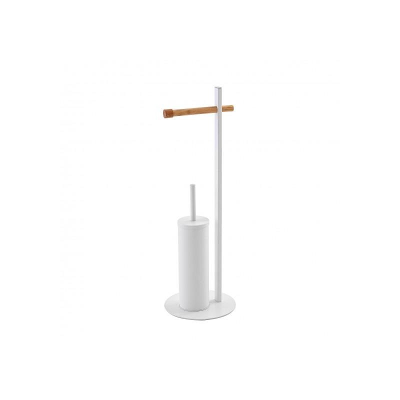 - Piantana porta scopino con porta rotolo in bamboo colore bianco 154104