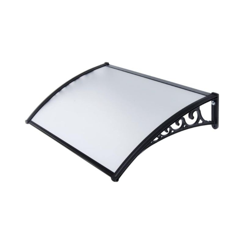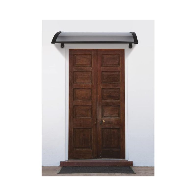 GLOUPIE Pensilina Da Esterno Lunghezza 100 Cm X Profondità 150 Cm In Policarbonato Compatto Resistente Alle Intemperie E Alle Avversità Atmosferiche Dall'Effetto Satinato Trasparente, Completa Di Profili In Alluminio E Braccetti In Polipropilene Rinforzato, Ideale Per Porte, Finestre E Balconi Della Propria Abitazione