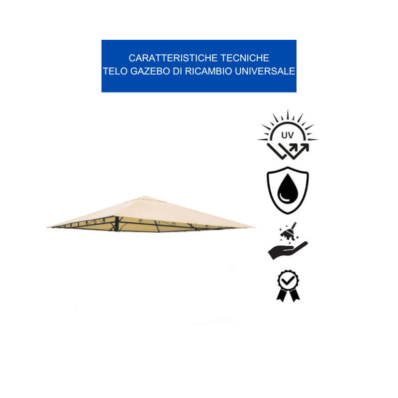 Questo Telo Di Ricambio Non è Un Semplice Sostituto, Ma Un Vero E Proprio Upgrade Per Il Tuo Gazebo. Realizzato In Poliestere 250G/M2, Vanta Una Robustezza Eccezionale Che Resiste Senza Batter Ciglio Alle Intemperie, Ai Raggi Uv E All'Usura Quotidiana. Dimentica I Colori Sbiaditi E I Tessuti Deformi: Il Telo Conserva La Sua Splendida Tonalità Ecrù, Anno Dopo Anno, Senza Perdere Il Suo Fascino