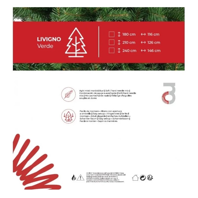 - GLOUPIE Albero Di Natale Livigno 180 Cm, Diametro 116 cm, Apertura Ad Ombrello, Ignifugo,12 Anni Di Garanzia
