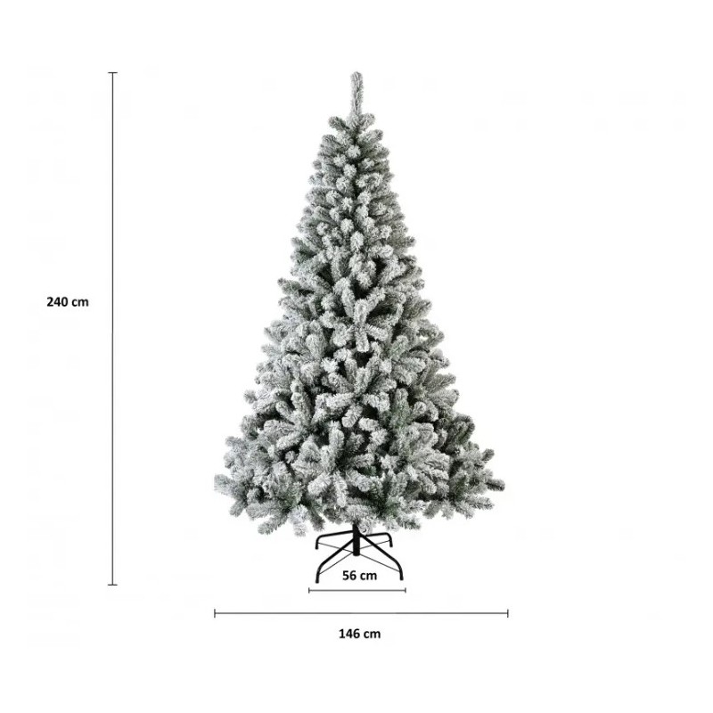 [QUALITA' CERTIFICATA] : Struttura Interamente realizzata In Acciaio Verniciato A Polvere, Progettato Per Durare Nel tempo, Dotato Di 1135 Rami Misti Morbidi Ricoperti Di Neve. Altezza 240 cm , Diametro Massimo 146 cm