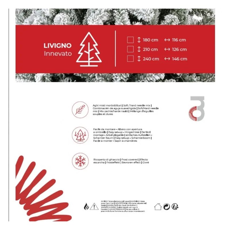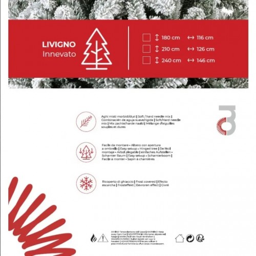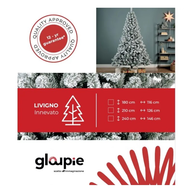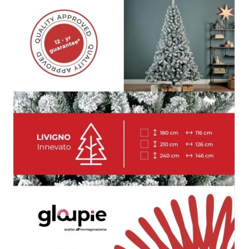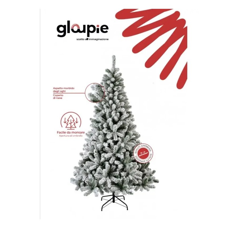 - GLOUPIE Albero Di Natale Livigno Innevato 240 Cm, Diametro 146cm, Apertura Ad Ombrello, Ignifugo,12 Anni Di Garanzia,