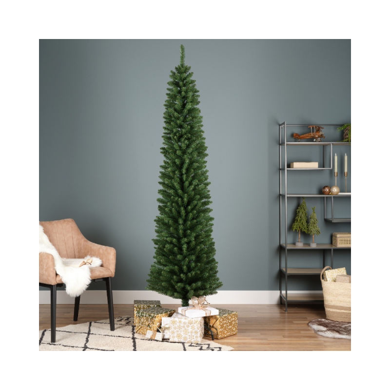 GLOUPIE Albero Di Natale Della Linea Cervinia Alto 240 Cm Con Diametro Di 70 Cm, Apertura Ad Ombrello Con I Rami Fissabili Direttamente Al Tronco Della Struttura, Molto Folto Avente 748 Rametti Morbidi In PVC, Ignifugo, 12 Anni Di Garanzia, Base A Croce In Metallo Dal Diametro Di 66 Cm, Ecologico In PVC Vergine Di Qualità, Effetto Realistico Slim