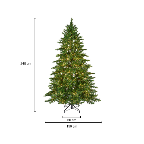 KLULK Albero Di Natale Della Linea Bormio Con 5400 Luci A Led Dalla Tonalità Calda Con 8 Effetti Lampeggianti Resistenti A Schizzi E Spruzzi D'Acqua, Alto 240 Cm Con Diametro Di 150 Cm, Apertura Ad Ombrello Con I Rami Fissabili Direttamente Al Tronco Della Struttura, Molto Folto Avente 2815 Rametti Morbidi Divisi In 1213 In PVC E 1602 In Silicone, Ignifugo, 12 Anni Di Garanzia, Base A Croce In Metallo Dal Diametro Di 60 Cm, Ecologico In PVC Vergine Di Qualità, Effetto Realistico