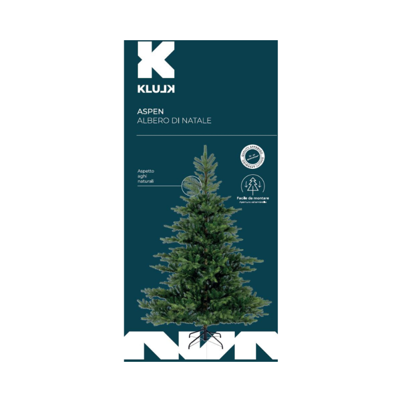 L'Albero Di Natale KLULK Aspen Ha Una Forma Slanciata E Tozza Che Lo Rende Ideale Per Ambienti Di Medie E Grandi Dimensioni. Dona Un Tocco Di Festa E Calore All'Ambiente Circostante Risultando Perfetto Per Case Con Metrature Ampie Che Desiderino Un Vero E Proprio Albero Ardimentoso Per Festeggiare Al Meglio Il Natale