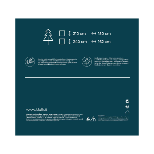 - KLULK Albero Di Natale Aspen 240 Cm, Diametro 162 Cm, Apertura Ad Ombrello, Ignifugo, 12 Anni Di Garanzia