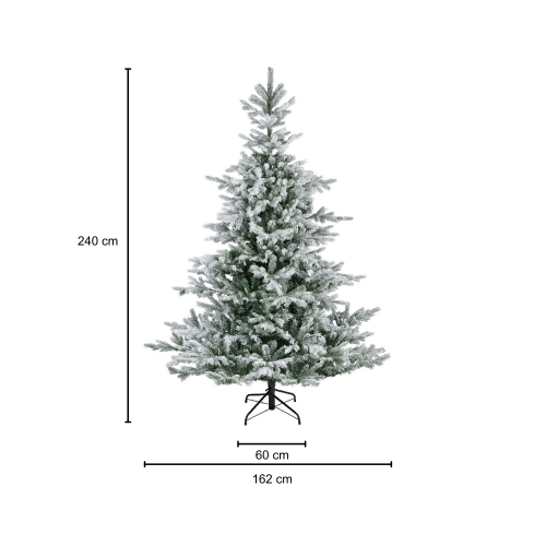 KLULK Albero Di Natale Innevato Aspen 240 Cm, Diametro 162 Cm, Apertura Ad Ombrello, Ignifugo, 12 Anni Di Garanzia