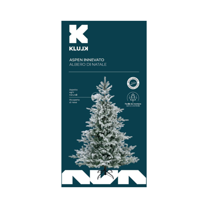 L'Albero Di Natale KLULK Aspen Ha Una Forma Slanciata E Tozza Che Lo Rende Ideale Per Ambienti Di Medie E Grandi Dimensioni. Dona Un Tocco Di Festa E Calore All'Ambiente Circostante Risultando Perfetto Per Case Con Metrature Ampie Che Desiderino Un Vero E Proprio Albero Ardimentoso Per Festeggiare Al Meglio Il Natale