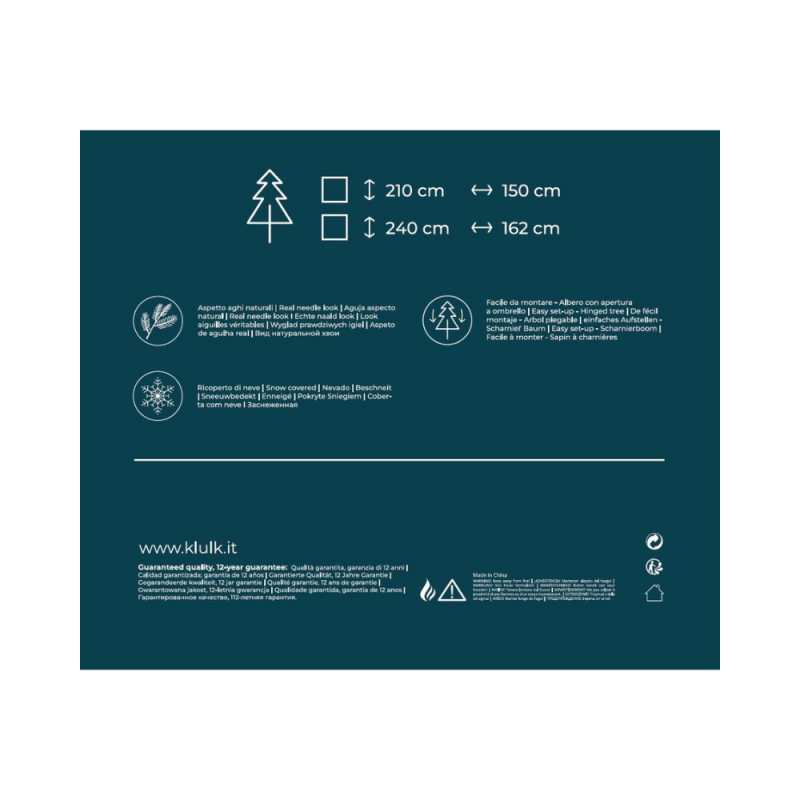 - KLULK Albero Di Natale Innevato Aspen 240 Cm, Diametro 162 Cm, Apertura Ad Ombrello, Ignifugo, 12 Anni Di Garanzia