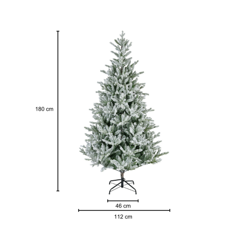 KLULK Albero Di Natale Merano Innevato 180 cm, Diametro 112 Cm, Apertura Ad Ombrello, Ignifugo, Garanzia 12 Anni