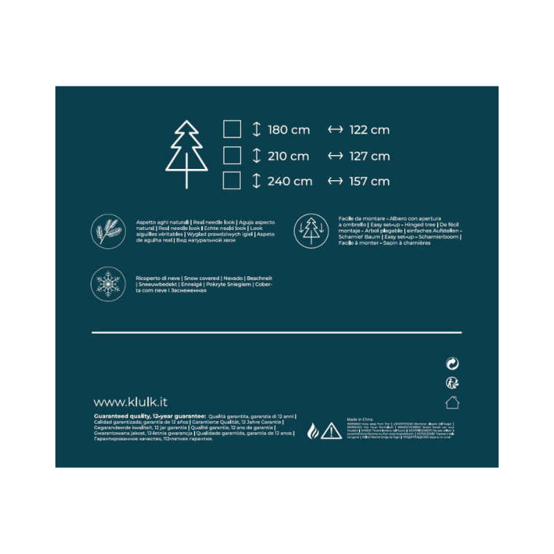 - KLULK Albero Di Natale Merano Innevato 180 cm, Diametro 112 Cm, Apertura Ad Ombrello, Ignifugo, Garanzia 12 Anni