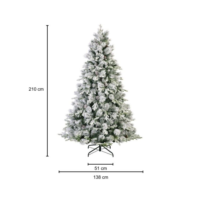 KLULK Albero Di Natale Ortisei Innevato Con Pigne 210 cm, Diametro 138 Cm, Apertura Ad Ombrello, Ignifugo, Garanzia 12 Anni