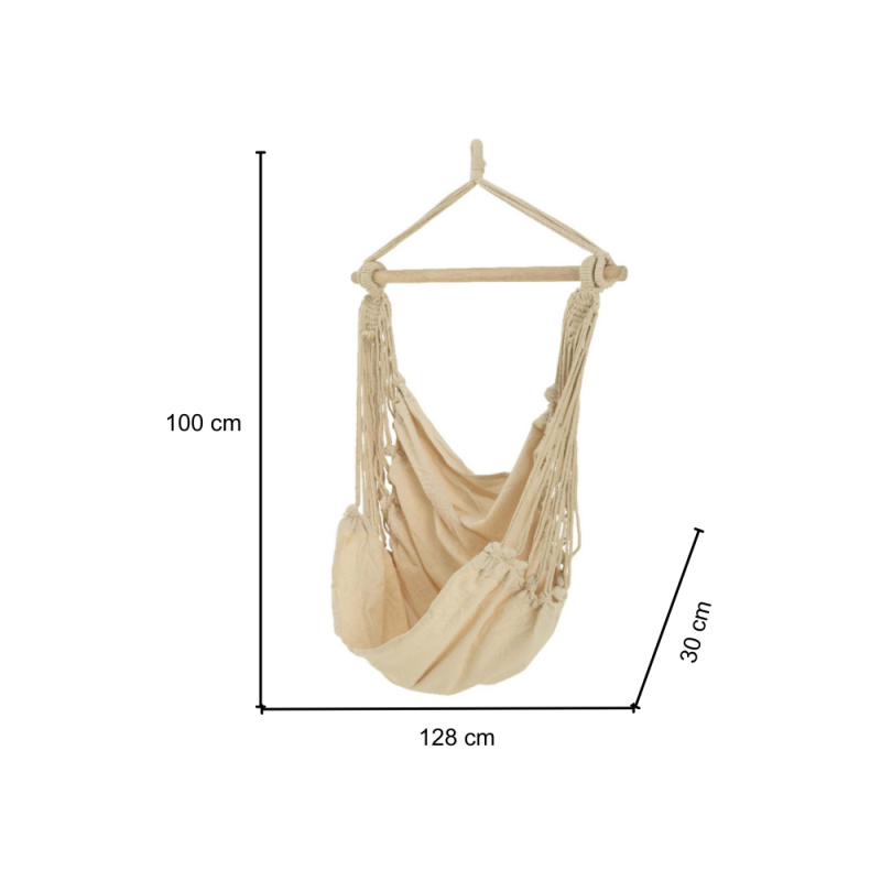 GLOUPIE Amaca Da Giardino E Ambienti Esterni Sospesa Rebe Con Telo In Poliestere Color Ecrù Resistente Alle Intemperie, All'Acqua E Ai Raggi Uv, Imbottitura In Cotone E Stecca In Legno Pratici E Anti Usura, Lunghezza 128 Cm x Profondità 30 Cm x Altezza 100 Cm, Portata Massima 120 Kg