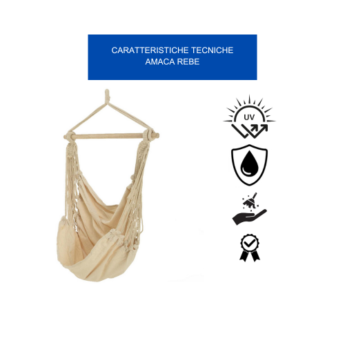Realizzata In Poliestere E Imbottita In Cotone Di Alta Qualità, L'Amaca Rebe Vanta Una Resistenza Eccezionale Alle Intemperie. Non Teme Né La Pioggia Battente, Né I Raggi Uv Del Sole, Né L'Umidità, Garantendoti Una Durata Nel Tempo Senza Paragoni. Potrai Goderti Il Tuo Angolo Di Relax In Giardino, Patio, Terrazza O In Qualsiasi Ambiente Esterno. Il Tessuto, Infatti, è Stato Appositamente Progettato Per Resistere All'Usura E Agli Strappi
