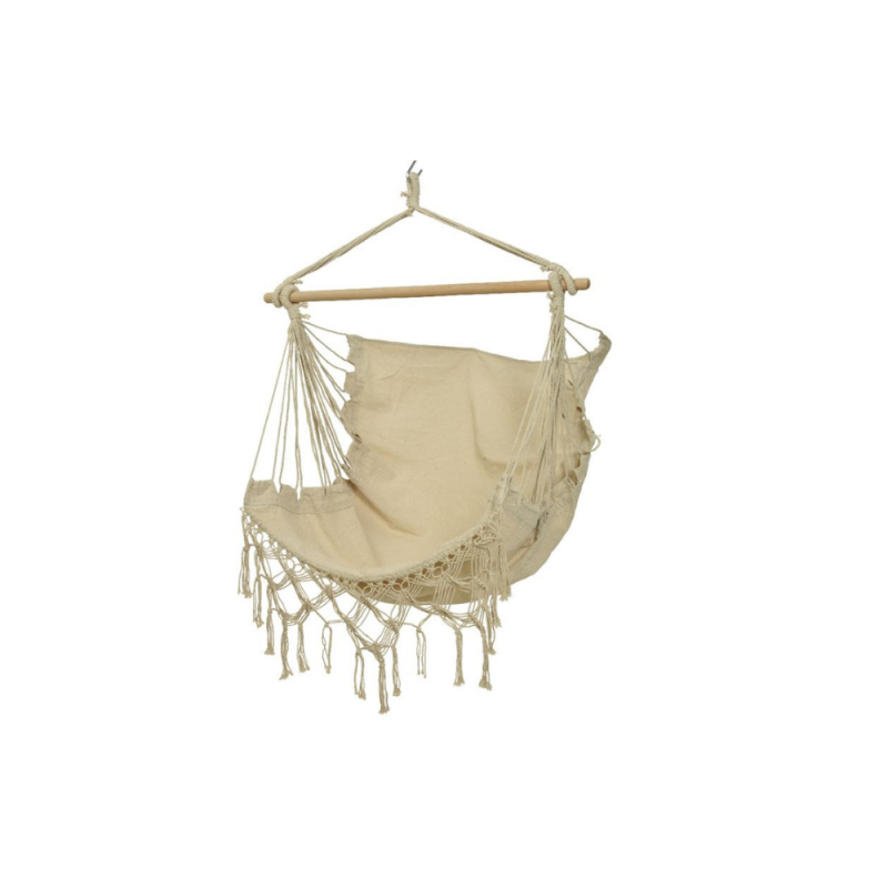- GLOUPIE Amaca Sospesa A 2 Posti Bibi In Crema E Intreccio In Corda Di Cotone Con Supporto In legno, L 130 x P 30 x H 100 Cm