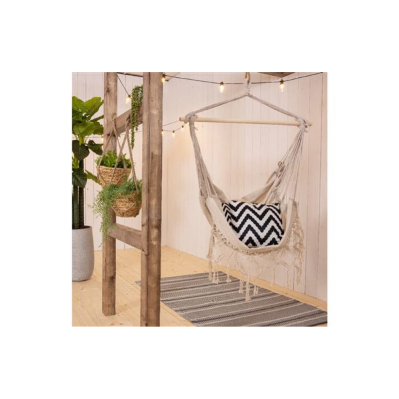 Realizzata In Poliestere Con Intreccio In Corda Di Cotone E Supporto In Legno, La Sedia Amaca Bibi Sfida Le Intemperie E Resiste All'Acqua, Ai Raggi Uv E Alla Ruggine. La Finitura Color Crema Dona Un Tocco Di Eleganza E Raffinatezza Che Si Adatta Perfettamente A Qualsiasi Stile D'Arredo Esterno. Dimentica Le Preoccupazioni Legate Alla Manutenzione E All'Installazione: Il Gancio Di Fissaggio E' Solido E Stabile Nel Tempo Per Una Sicurezza Garantita