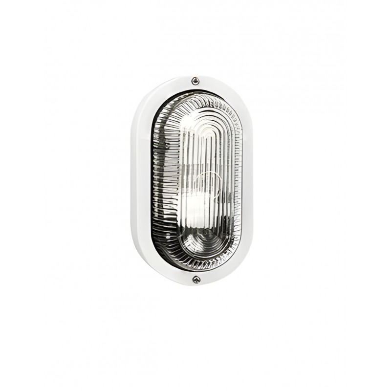 GLOUPIE Plafoniera Da Esterno Ovale A Parete Helios Bianca IP44 Potenza 60 W, L 20,4 x P 9,5 H 11,5 Cm Con Porta Lampada E27