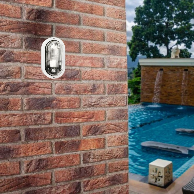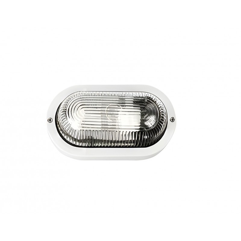 - GLOUPIE Plafoniera Da Esterno Ovale A Parete Helios Bianca IP44 Potenza 60 W, L 20,4 x P 9,5 H 11,5 Cm Con Porta Lampada E27