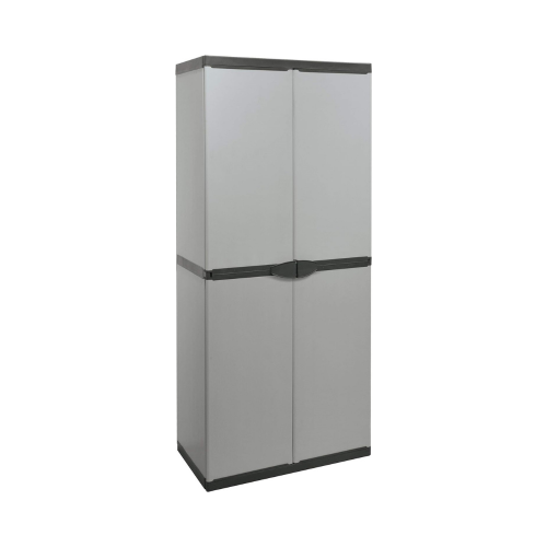 GLOUPIE Armadio Portascope Alto 168 Cm Con 2 Ante E 3 Ripiani Joker In Resina PVC E Polipropilene Grigio E Nero
