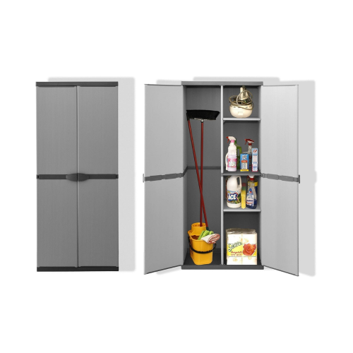 Dotato Di 3 Ripiani E 2 Ante Battenti, L'Armadio Joker Offre Un Ampio Spazio Di Archiviazione Per Riporre Ordinatamente Scope, Mop, Attrezzi Da Giardinaggio, Giochi Per Bambini O Qualsiasi Altro Oggetto Che Necessiti Di Essere Organizzato. I Ripiani Regolabili Permettono Di Adattare L'Armadio Alle Proprie Esigenze, Ottimizzando Lo Spazio Disponibile In Base Alle Dimensioni Degli Oggetti Da Riporre