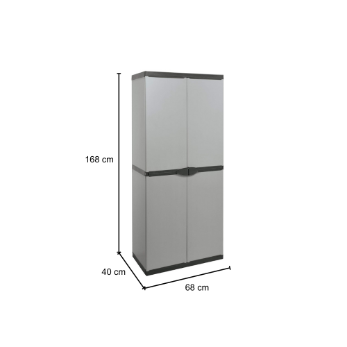 GLOUPIE Armadio Portascope Da Interno Ed Esterno Alto Con 2 Ante E 3 Ripiani, Linea Joker, Realizzato In Resina PVC E Polipropilene Alveolare Resistente Agli Urti, Ai Graffi E Alle Intemperie In Combo Di Colorazione Grigio E Nero, Lunghezza 68 Cm x Profondità 40 Cm x Altezza 168 Cm, In Kit Di Montaggio Facile Da Assemblare, Modular System Per Ancorarlo Semplicemente Agli Altri Prodotti Della Stessa Linea, Completo Di Chiusura Lucchettabile E Pannello Divisorio