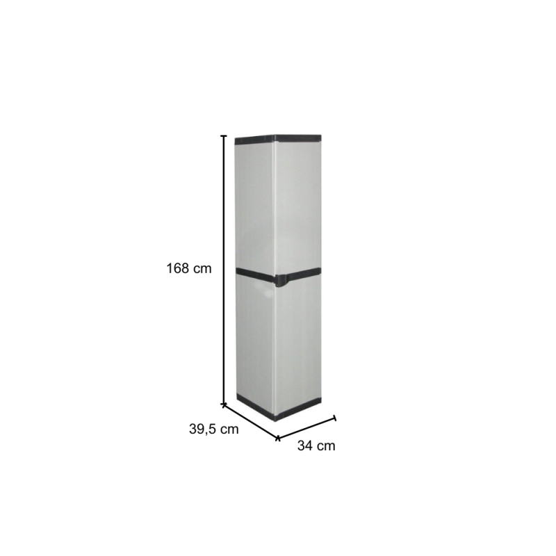GLOUPIE Armadietto Multiuso Da Interno Ed Esterno Alto Con 1 Anta E 4 Ripiani, Linea Joker, Realizzato In Resina PVC E Polipropilene Alveolare Resistente Agli Urti, Ai Graffi E Alle Intemperie In Combo Di Colorazione Grigio E Nero, Lunghezza 34 Cm x Profondità 39,5 Cm x Altezza 168 Cm, In Kit Di Montaggio Facile Da Assemblare, Modular System Per Ancorarlo Semplicemente Agli Altri Prodotti Della Stessa Linea, Completo Di Chiusura Lucchettabile