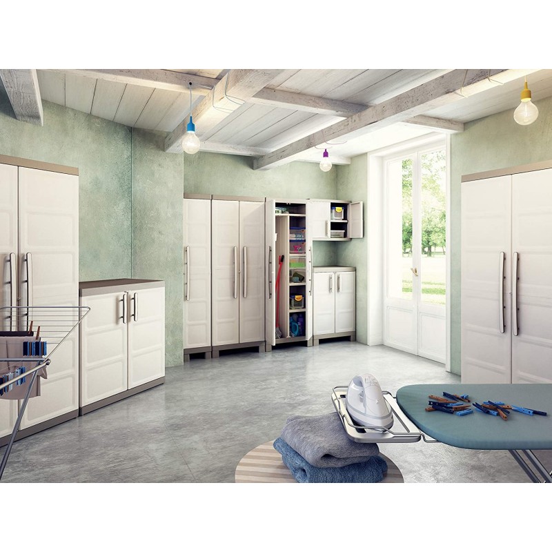armadio alto excellence in plastica, con piedini rialzati e 4 ripiani regolabili: linee eleganti, maniglione ergonomico, per un armadio funzionale ed esteticamente gradevole.