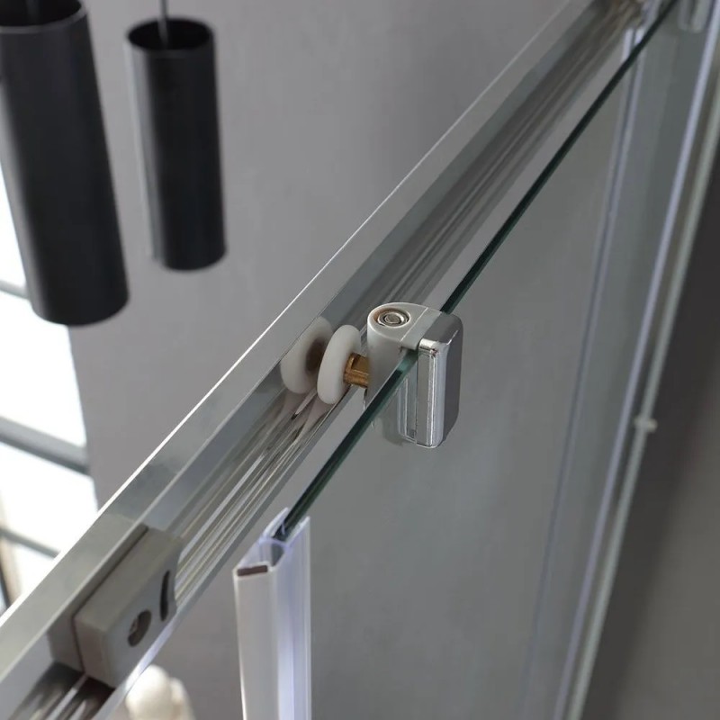 - Materiale: struttura in alluminio cromato + vetro in cristallo trasparente e temperato da 4 mm