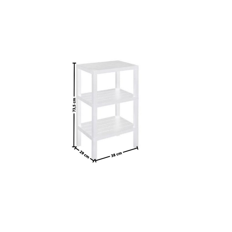 Colonna bagno modulare composta da tre ripiani e realizzata in polipropilene senza BPA.