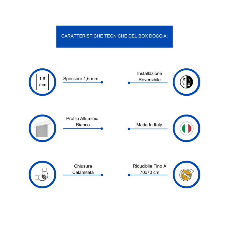[Adattabilita' massima]: Il box doccia e' progettato per adattarsi perfettamente alle tue esigenze. Grazie alla sua reversibilità, potrai installarlo con apertura a destra o a sinistra, in base alla configurazione del tuo bagno. Inoltre, la possibilità di ridurlo fino a 70x80 cm lo rende ideale anche per i bagni più piccoli, offrendo una soluzione versatile e ottimizzata - e' consigliato utilizzare un piatto doccia delle stesse dimensioni del box doccia, ovvero 80x90 cm (non incluso nel prezzo)