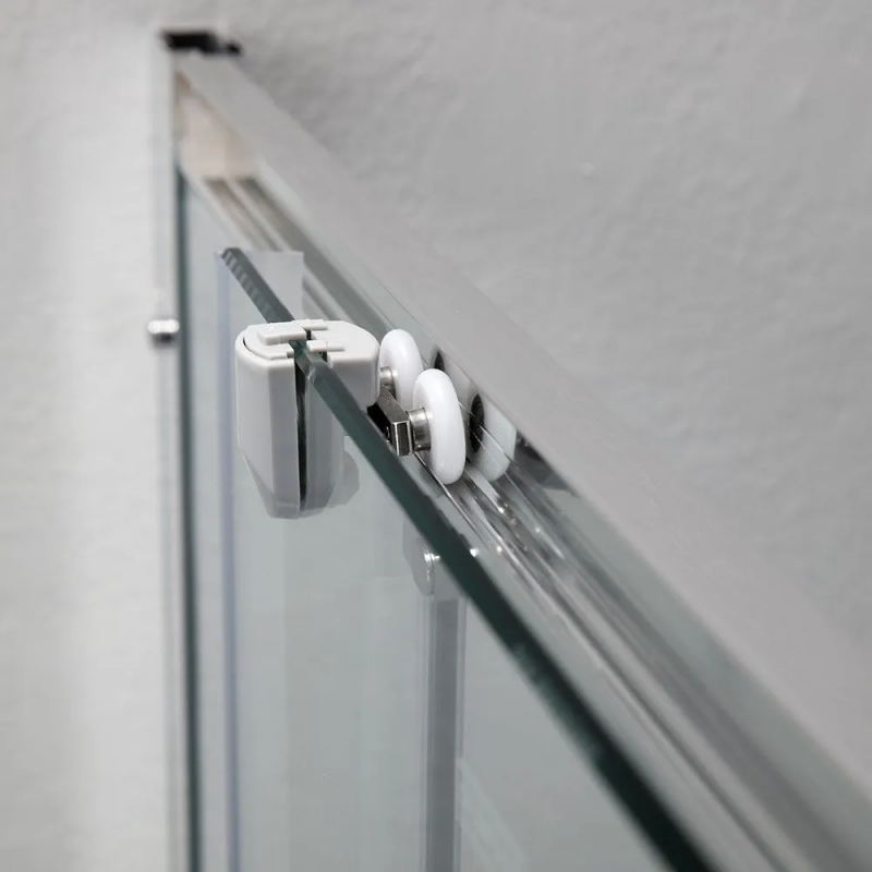 Lo scorrimento delle porte avviene tramite un sistema di cuscinetti, mentre i vetri mobili sono dotati di uno sgancio rapido, sistema che permette una pulizia approfondita del box. La dimensione proposta di 80x80 può variare grazie al sistema di regolazione: da 78 a 80 cm.