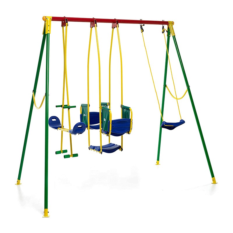 altalena solida e robusta, dai bei colori vivaci e accesi e facile da montare, con piedini in acciaio anti ribaltamento per il fissaggio in giardino.
