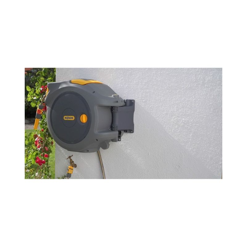 Staffa a parete con copertura a 180 gradi – La robusta staffa da parete consente all’Auto Reel di ruotare di 180 gradi, consentendoti di raggiungere ogni angolo del tuo giardino e conservarlo in corrispondenza della parete dopo l’uso.