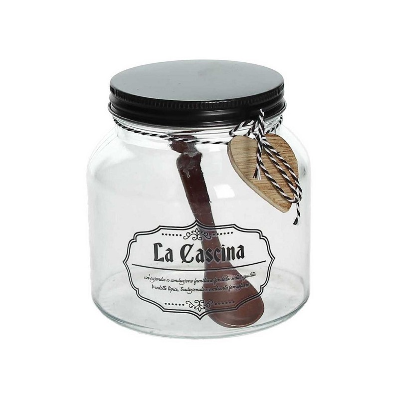 - Barattolo medio 650cc con coperchio e cucchiaio in vetro trasparente linea la cascina