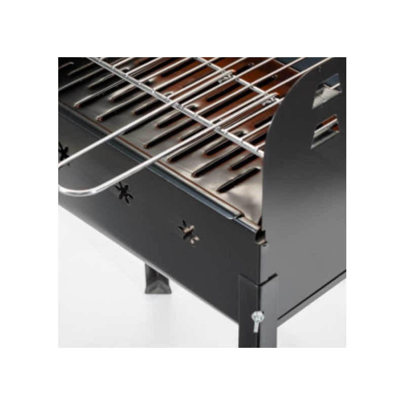 di forma rettangolare permette di essere istallato con estrema velocità per preparare con velocità ottimi piatti da condividere con gli ospiti e gli amici. semplice per le operazioni di manutenzione e la pulizia. funziona a carbonella ed è particolarmente adatto per gestire grigliate con facilità. la comoda e resistente griglia in acciaio cromato di cui è dotato è posizionabile in due diverse altezze a seconda della necessità. le dimensioni della griglia rettangolare sono 55 cm x 35 cm.