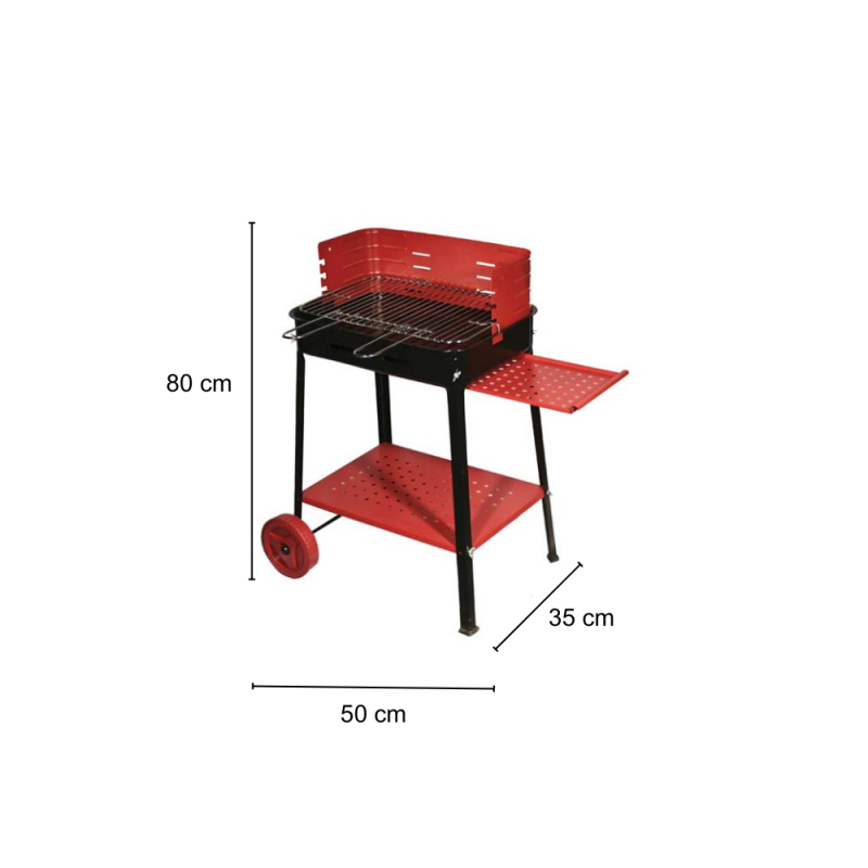 - Barbecue con ruote griglia in acciaio cm 50x35x80h piano estraibile da giardino