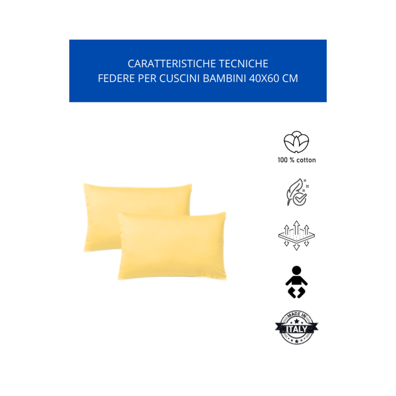 - KLULK Set 2 Federe Per Cuscini Per Bambini 40x60 Cm,In Puro Cotone 100% Fibra Naturale In Tinta Unita Giallino, Made In Italy