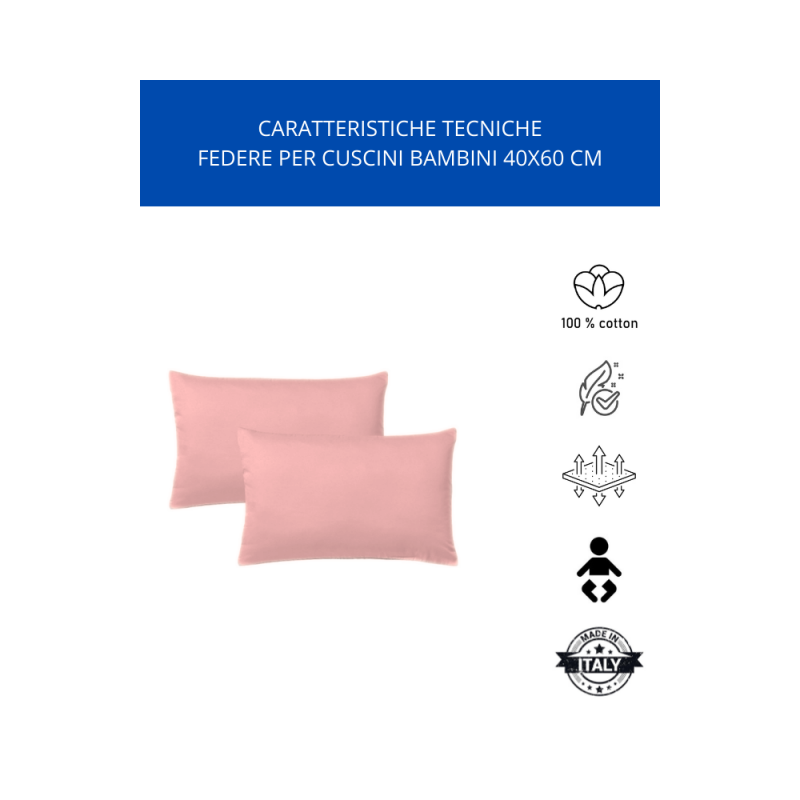 - KLULK Set 2 Federe Per Cuscini Per Bambini 40x60 Cm,In Puro Cotone 100% Fibra Naturale In Tinta Unita Salome Made In Italy
