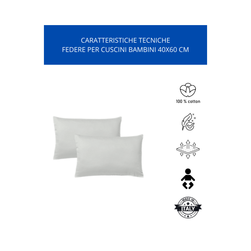 - KLULK Set 2 Federe Per Cuscini Per Bambini 40x60 Cm,In Puro Cotone 100% Fibra Naturale In Tinta Unita Perla Made In Italy