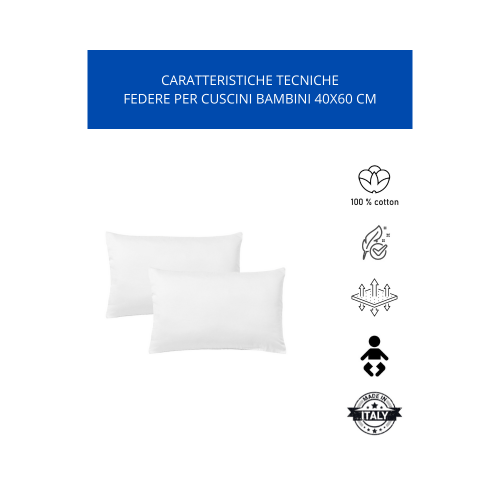 - KLULK Set 2 Federe Per Cuscini Per Bambini 40x60 Cm,In Puro Cotone 100% Fibra Naturale In Tinta Unita Bianco Made In Italy