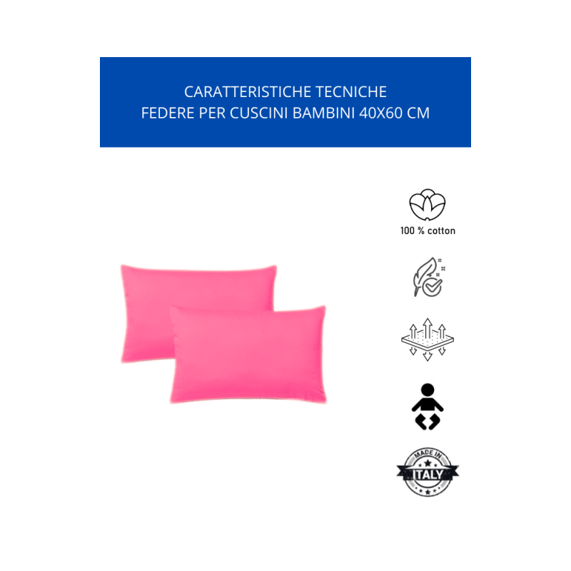 - KLULK Set 2 Federe Per Cuscini Per Bambini 40x60 Cm,In Puro Cotone 100% Fibra Naturale In Tinta Unita Fragola Made In Italy