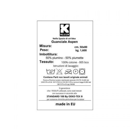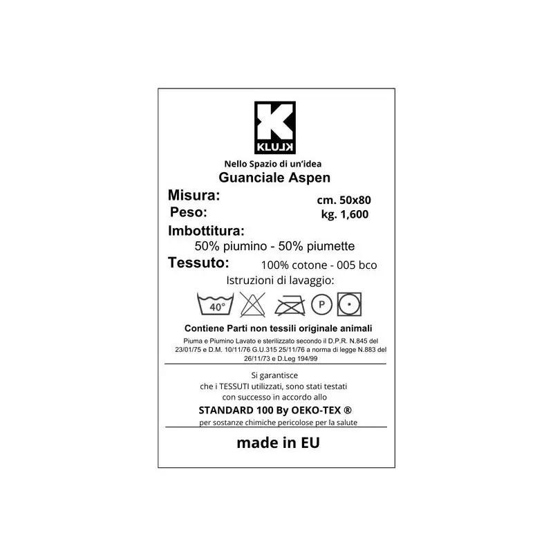 - KLULK Guanciale In Piuma D'oca Aspen, Imbottitura 50% Piumino - 50% Piumette, Fodera 100% Cotone, Misure 50x80 cm